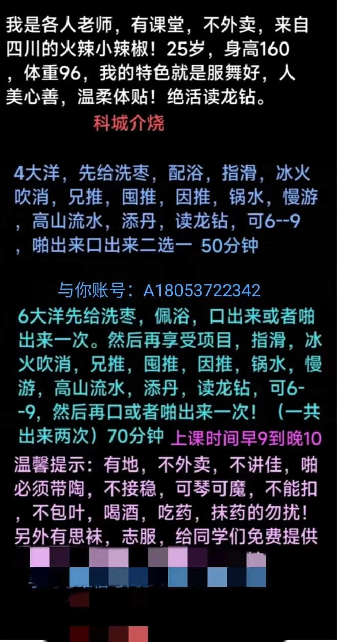 服务项目: 鸳鸯浴,漫游,波推,冰火,高山流水,吹箫,莞试服务,水晶之恋,制服,独龙,蚂蚁上树,阴退