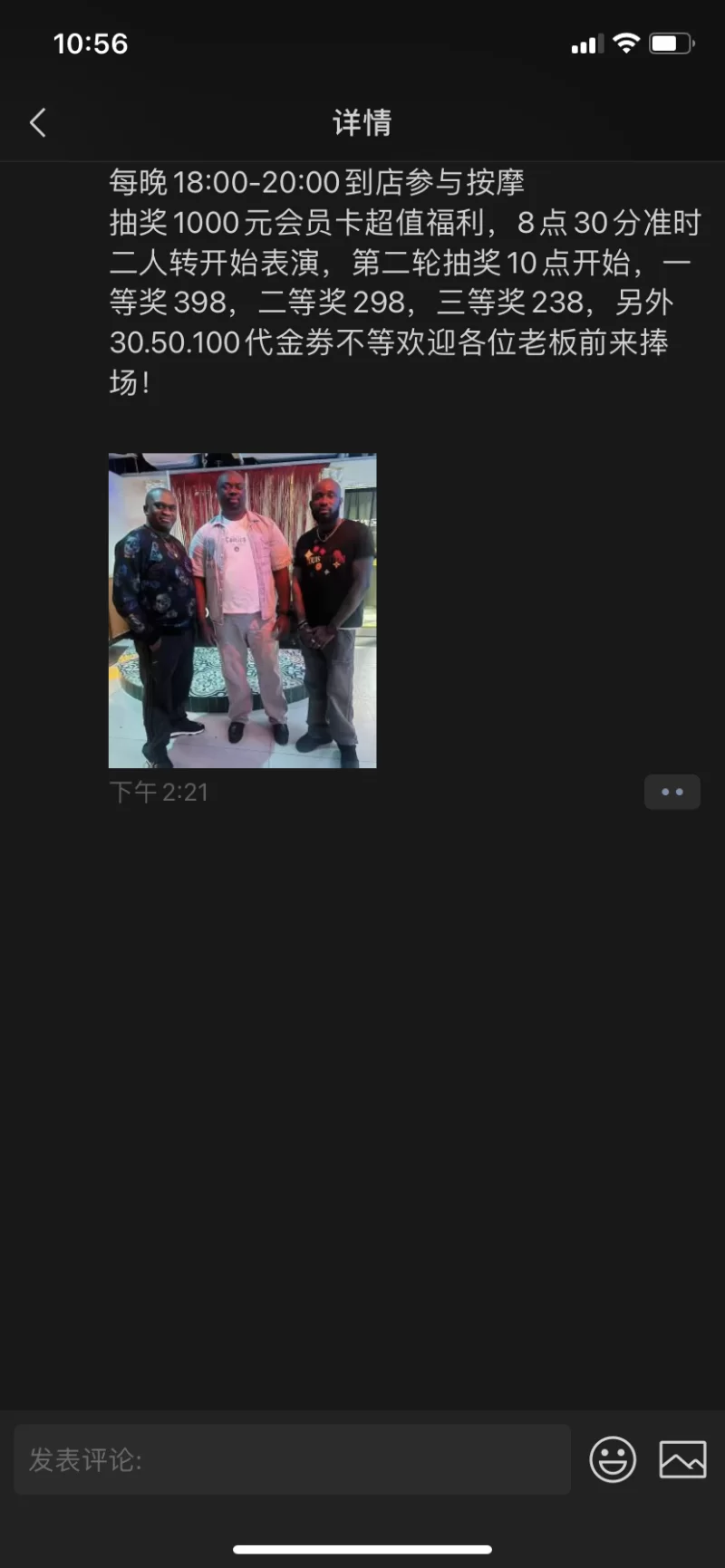 立即登录一楼洗浴。洗完上二楼就能看见技师。最近在搞活动晚上8点半有二人转表演。10点还有抽奖活动